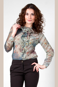 Блузка 850 шифон фисташково-коричневый Пейсли