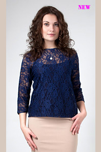 Блузка 937 кружевное полотно синее Цветы